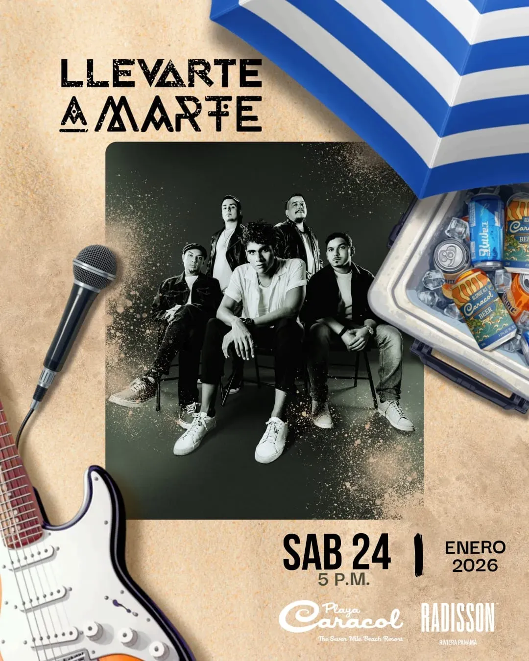 El pasado sábado 24 de enero de 2026, Caracol vivió una tarde llena de música, energía y buena vibra frente al mar en Radisson Riviera Panamá, Playa Caracol, con la presentación en vivo de la banda Llevarte a Marte.