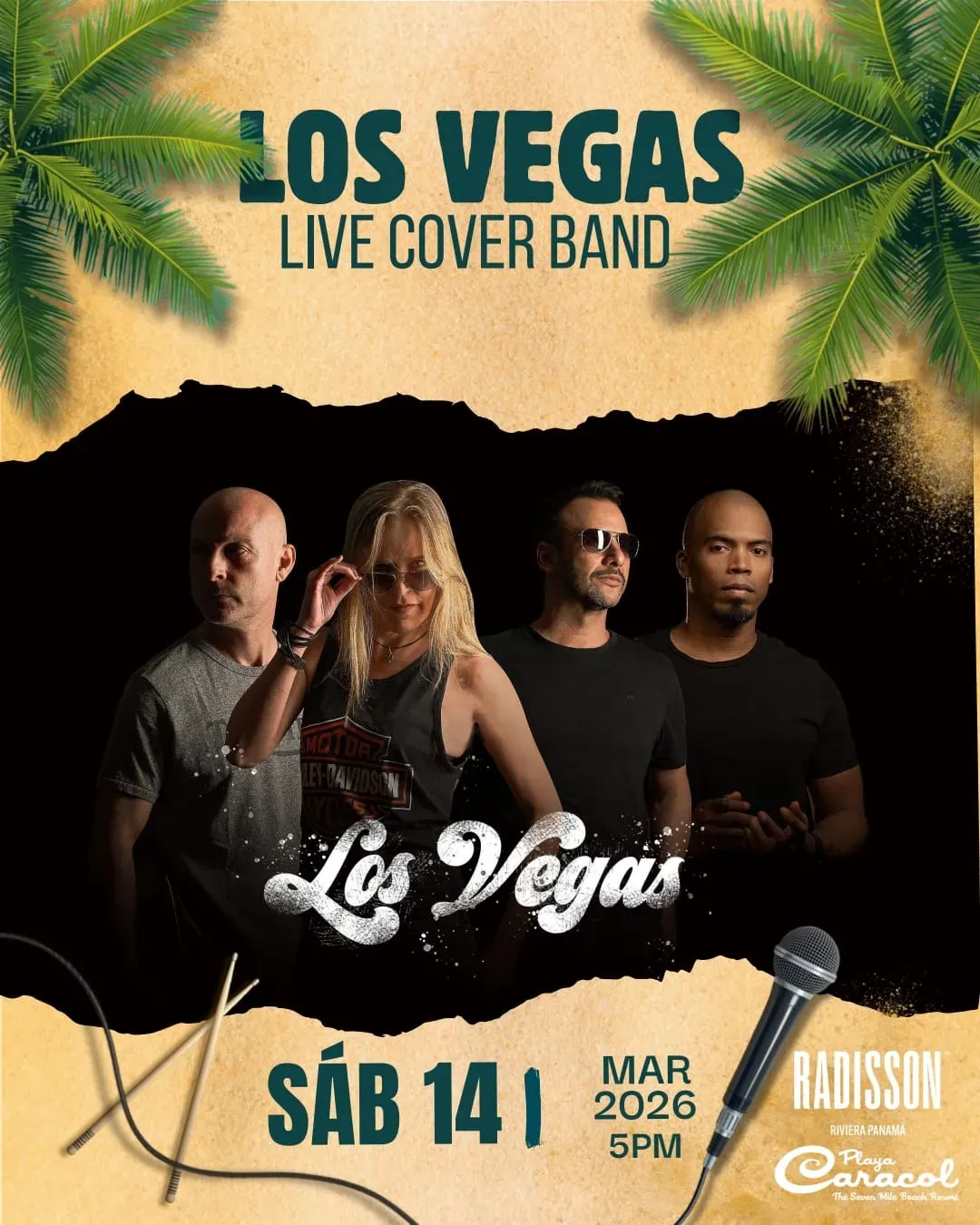 El verano continúa en Playa Caracol con una noche de música en vivo junto al mar. Este sábado 14 de marzo a las 5:00 p.m., el escenario del Radisson Riviera Panamá recibirá a Los Vegas Live Cover Band, una banda reconocida por su energía en vivo y sus versiones de grandes éxitos que invitan a cantar, bailar y disfrutar.