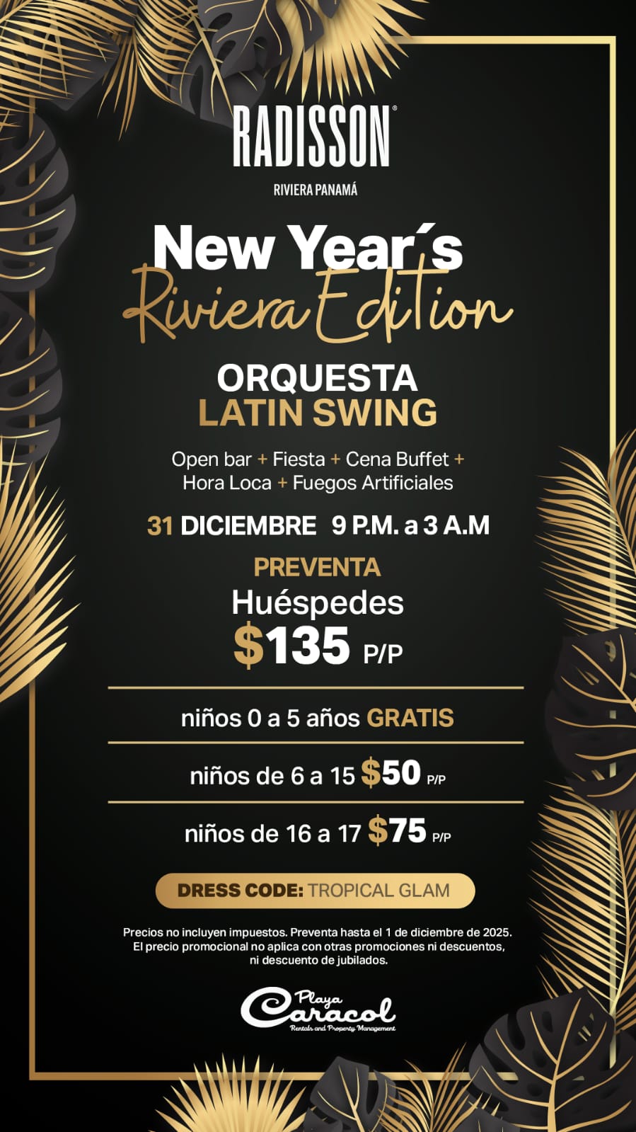 Preventa exclusiva para la Fiesta de Año Nuevo en Playa Caracol Resorts – Hotel Radisson Riviera Panamá.