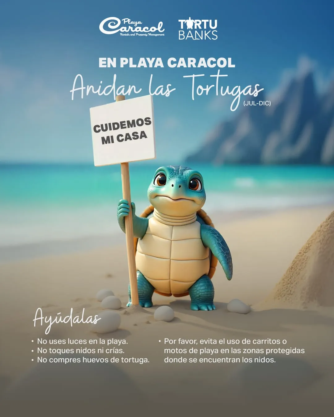 Estamos en temporadas de tortugas en Playa Caracol, cuidemos su casa 🐢🌊 aquí te dejamos algunos consejos: